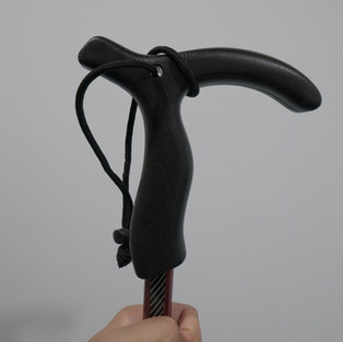 T柄的設計一般會有一個向下增長的手柄位置,在上坡路段可以不用縮短杖身,而直接握著該部份。柄的握法根據個人舒適而定,沒有說柄尖一定要向前或向後。